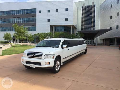 Passengers: 20 Vehicle Color: Pearl White If your looking to ride in style then check out Dallas Limos Infiniti Stretch Limo. With a 20 person capacity, sleek single window exterior design, and two-tone Ostrich leather bench seating, this vehicle is perfect for any occasion. Sleek Single Window Exterior Design Interior Multi-Color LED Coach Lights Exterior Multi-Color Under-Glow LED Lights Two-tone Ostrich Leather Bench Seating White Marbled Bar Area with Stainless Steel Backdrops Crystal Champagne Glassware For Celebrating Multi-Color LED Mood Lighting