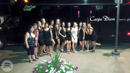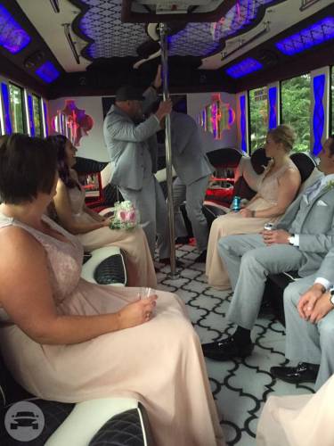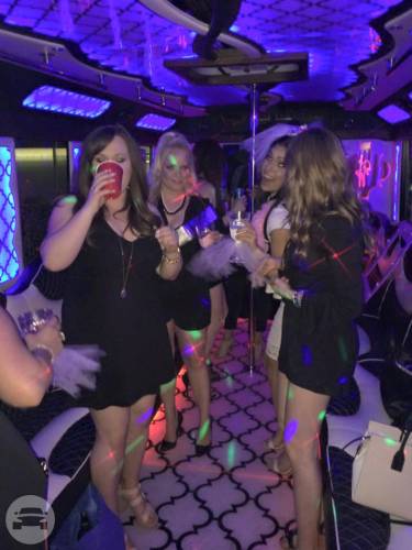 Simply made for you and your wild group of friends Equipped with 2 stripper poles Mind blowing, ear popping sound system Flashing, blinking, strobe, and L.E.D. lights Seats 28