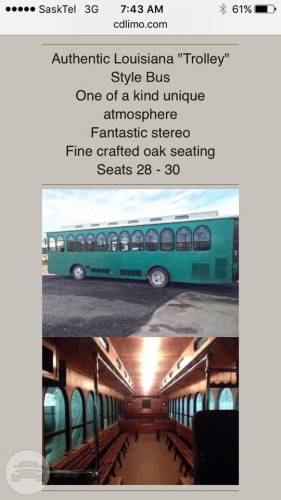 Authentic Louisiana "Trolley" Style Bus One of a kind unique atmosphere Fantastic stereo Fine crafted oak seating Seats 28 - 30