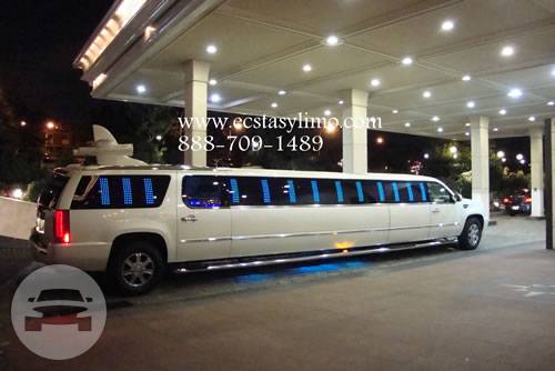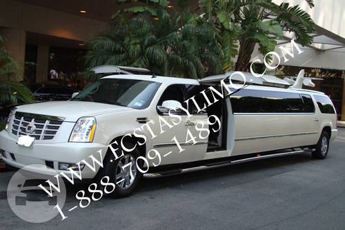 Just Arrived This escalade limousine, Wedding limo and Prom limo can accommodate 14 - 22 passengers in style and comfort. This specialty escalade limousine is customized with dual jet doors. New York Cadillac Escalade Limousine is equipped with flat Screen monitors, AM/FM/CD, DVD, Play Station, lava lamps,fiberoptic mirrored ceiling and a complete refreshment center. The perfect limo for Quinceanera's and Sweet Sixteen, a dream come true. This Escalade limousine is available in New York, New Jersey and Connecticut.