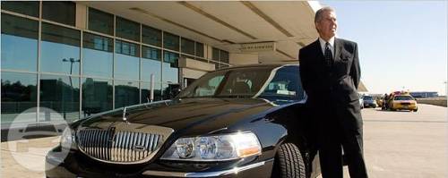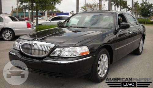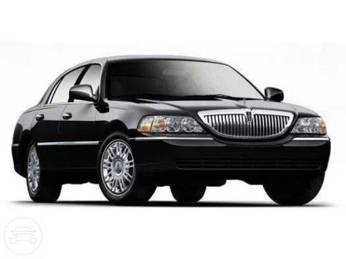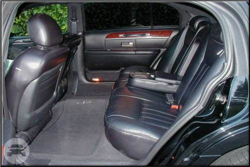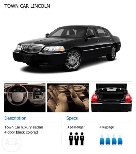 Towncar Luxury Sedan, 4 door black colored, 3 passengers and 4 luggage.