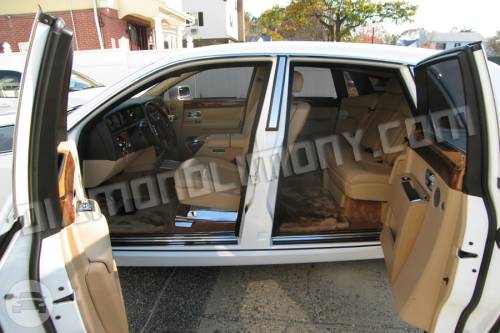 This 2010 Phantom V is a perfect ride for the bride and a groom in style and comfort. With seating for up to 4 passengers, this vehicle is equipped with Chrome Rims, Navigation, air conditioning and AM/FM Stereo. This elegant limousines is at your service for any occasion, from weddings to proms. Prom packages are based on garage to garage time frame.