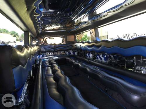 Passengers: 18-22 Vehicle Color: Blue Dallas Limos “Goliath” H2 Hummer Stretch Limo has to be one of the most unique limos available in all of Texas. This enormous stretch features interior fiber optic lighting, touch screen entertainment controlled systems and multiple large interior LED TV’s. Everyone will clear out of your way when they see your group coming down the road. The “Goliath” H2 Hummer Stretch Limo is painted Dallas Cowboys blue and is perfect for game days! Dallas Hummer Limo Rental and Fort Worth Hummer Limo Texas Fiber Optic Lighting Featuring Starlights Throughout the Limo Sleek Single Window Exterior Design Touch Screen Entertainment Display Controls Features Touch Screen Radio/DVD/CD/iPod Entertainment Systems Multiple Large Interior LED TV’s High Energy Output Speakers with Subwoofers and Amplifiers Custom Starlight Mirrored Disco Ceiling Lights Wavy Premium Black Leather Perimeter Bench Seating Features 8 Custom Interior Wet Bar Areas