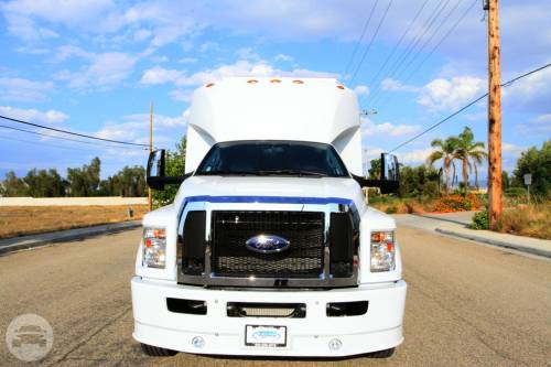 Passengers: 48-55 Vehicle Color: White If you’re ready to dance the night away, then you need to reserve Dallas Limos Ford F-750 Party Bus for your next event or night out on the town. Featuring multiple large interior LED TV’s, premium leather perimeter seating and a disco dance floor, the F-750 is ready to handle parties up to 55 passengers. Multi-Color LED Light-Up Disco Floor Dance Pole Leather Perimeter Bench Seating Multiple Large Interior LED TV’s High Energy Output Speakers with Subwoofers and Amplifiers Rear Climate Control Station Ultra Quiet Interior Spacious Interior Layout
