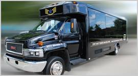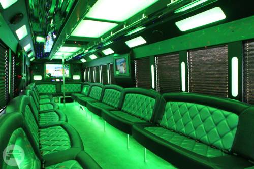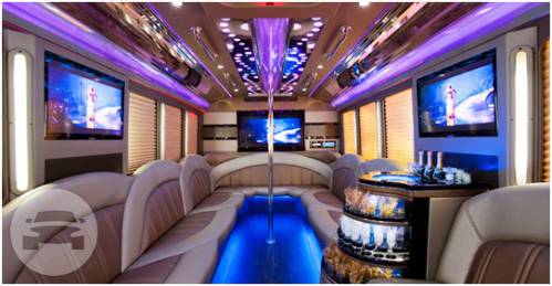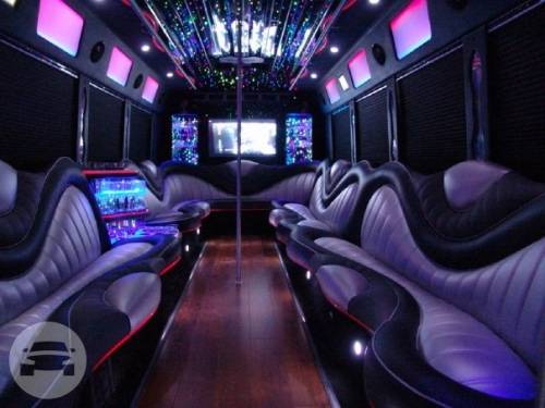 Seats up to 24 Passengers Thirty-five feet of pure excitement, this huge party limo bus is not for the faint at heart. Come enjoy the party atmosphere with all of your friends. Amenities: (3) 8" LCD Screens 42" Plasma Screen TV 5000 Watt Audio System DVD/CD Player IPod/Video Camera Connections Laser Light Show Dancers Pole Wood Floors Neon Mood Lighting Strobe Lights