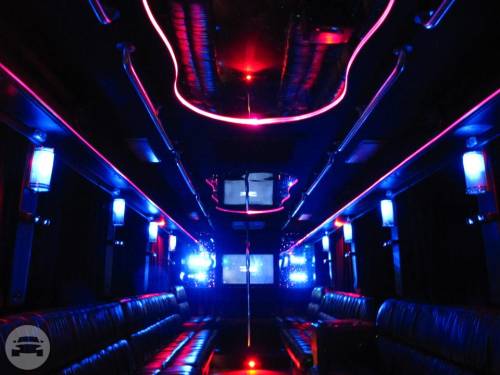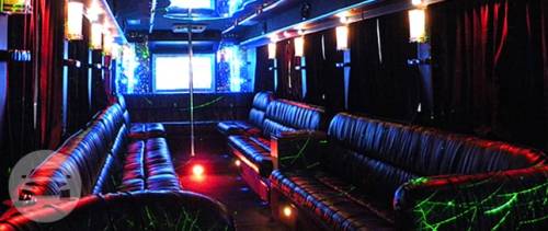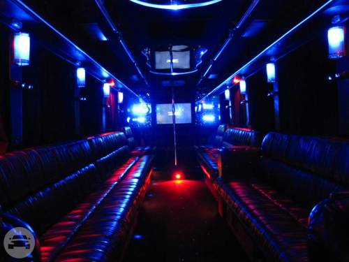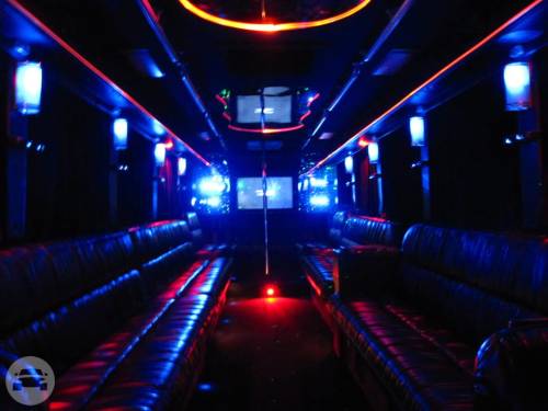 Party bus seats from 35-50 passengers comfortably with a maximum of 50 passengers. Features: CD/AM/FM/IPOD Privacy Window Tint Plus Blinds Fiber Optic Mood Lighting Stereo Surround System Ipod Direct Connection (some models only) Bar Flat LCD Screen (some models)