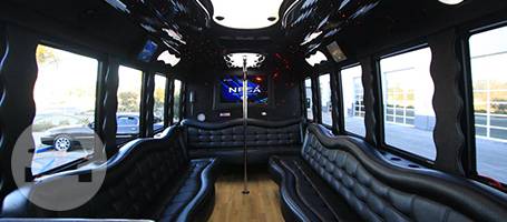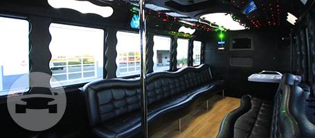 Party bus seats from 2-26 passengers comfortably with a maximum of 26 passengers. Features: CD/AM/FM/IPOD Privacy Window Tint Plus Blinds Fiber Optic Mood Lighting Stereo Surround System Ipod Direct Connection (some models only) Bar Flat LCD Screen (some models)