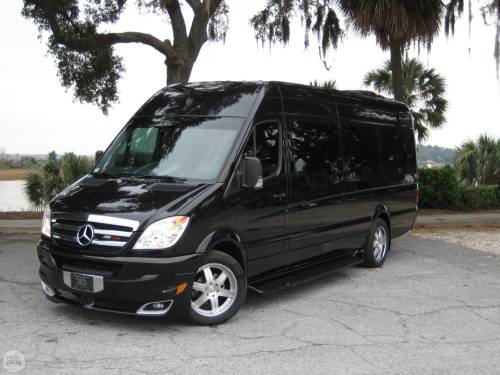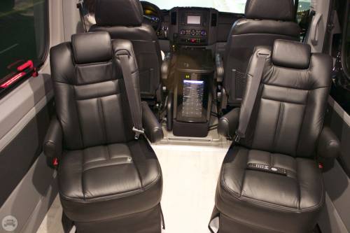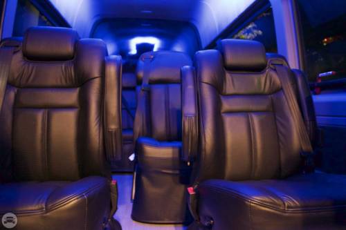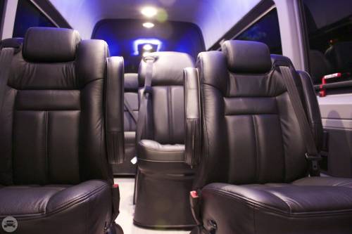 Passenger Capacity: 11 With boardroom style amenities and forward facing bucket seats, this sprinter van is our flagship model. It is a perfect choice for corporate or executive travel, corporate roadshows, city tours and larger sized parties that need LAX car service. Amenities: Individual Leatherette Captains chair style bucket seats (11 pax) Tall Vaulted Ceiling for standing room Large step up entry Oversized Rear Cargo hold with room for up to 12-14 pieces of luggage Commercial grade climate control with individual passenger controlled venting system Hardwood flooring 23”inch LCD Screen with multi input function surround sound stereo system Complimentary bottled water 4G LTE WiFi (upon request) holds up to 11 passengers with room for up to 14 pieces of luggage