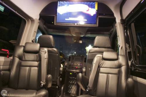 Luxury Sprinter Van. Seats up to 9 Passengers. Captain Seats, 42 Inch TV, PS4, Wood Floors, Party Lights, Wine Cooler.