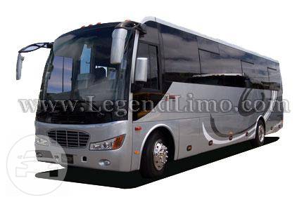Coach bus seats up to 40 passengers comfortably with a maximum of 40 passengers. Luggage capacity is 60 plus carry on. Features: CD Privacy Window Tint Plus Blinds Overhead Storage Compartments Comes in white only.