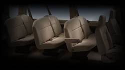 Ford Econoline Van Seats 14 People + Luggage You need to get your group quickly and safely to their destination, what better vehicle than the relaxing and reliable Ford Econoline Van? With plenty of legroom and storage space, we’ll get up to 14 people comfortably transported along with your gear.
