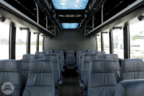 Mini coach bus seats up to 21 passengers comfortably with a maximum of 21 passengers. Luggage capacity is 21 plus carry on. Features: CD Privacy Window Tint Plus Blinds Overhead Storage Compartments Comes in white only.