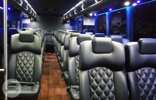 If you're looking for shuttle transport for up to 32 passengers, our Ford F650 shuttle bus is a great choice! Comfortable high-back leather seating, overhead luggage space, gorgeous wood floors, and beautiful lighting make this a relaxing way to travel in large groups. The windows are deeply tinted so you'll enjoy the ultimate privacy.