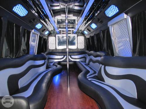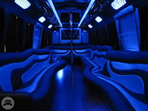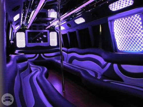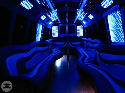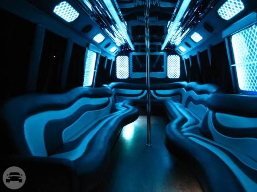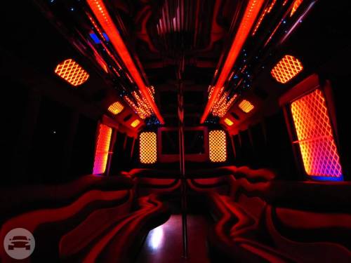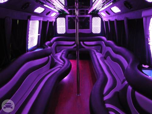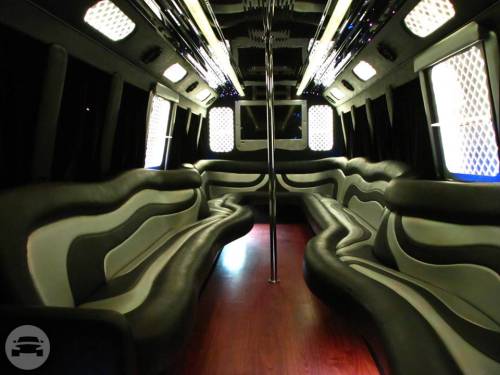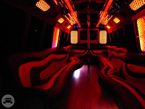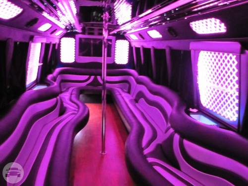Party bus seats from 20-40 passengers comfortably with a maximum of 40 passengers. Features: CD/AM/FM/IPOD Privacy Window Tint Plus Blinds Fiber Optic Mood Lighting Stereo Surround System Ipod Direct Connection (some models only) Bar Flat LCD Screen (some models)