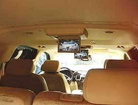 Our black Cadillac ESV SUV seats up to 6 adult passengers who want to experience outstanding ride comfort and relaxation in ultra plush tan leather seats and impressive looking climate-controlled cabin. It has dark tinted windows, sunroof, (10) speakers, (2) TV monitors, USB hookup, and DVD entertainment system.