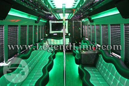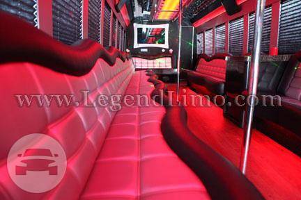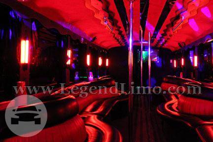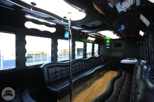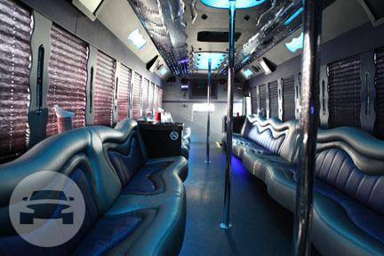 Party bus seats from 30-45 passengers comfortably with a maximum of 45 passengers. Features: CD/AM/FM/IPOD Privacy Window Tint Plus Blinds Fiber Optic Mood Lighting Stereo Surround System Ipod Direct Connection (some models only) Bar Flat LCD Screen (some models)