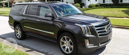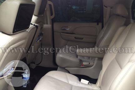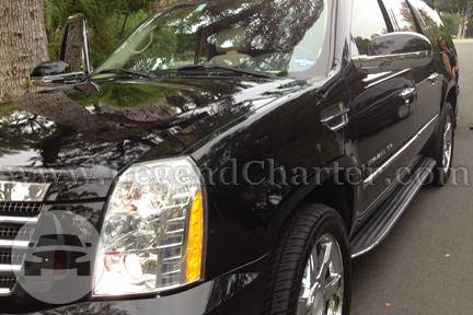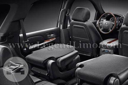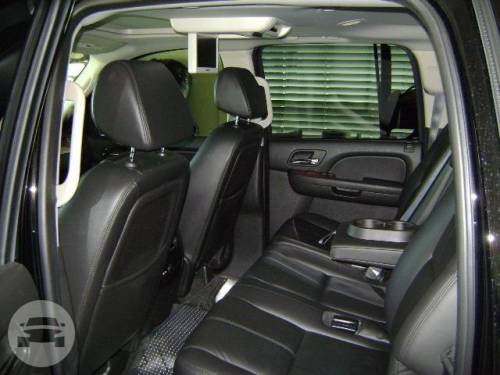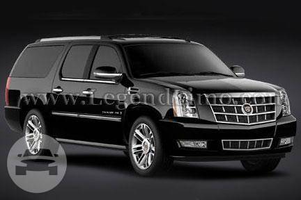 Our luxury Cadillac Escalade SUV seats 4-6 comfortably with a maximum of 7 people. Golf clubs, strollers, or luggage for all easily fit in this SUV. It is known for it's luxurious amenities, extraordinary styling, and passenger comfort. Comes in black only. Features: CD/AM/FM/IPOD SyriusXM Third Row Cargo Seat Privacy Window Tint Leather Seats Heated & Cooled Seat Bose 5.1 Surround Sound Rear-Seat Entertainment System