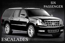 Our Cadillac Escalade SUV is perfect for groups of up to 6 passengers who need transportation for any reason. Sleek black exterior, plush black leather seating, great stereo system, luggage space, and tinted privacy windows, make this a true VIP way to travel to the airport, around town, or anything else you can think of.