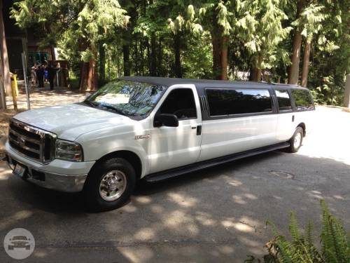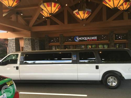 “Bruce” 10-passenger super-stretch Excursion SUV Limo. Bruce is what we fondly call our very popular large-group limo. This very large (wide and long) Excursion SUV (Sport Utility Vehicle), has a design based on the Super Duty pickup truck platform. And as such, this style served as Ford’s largest SUV in the lineup during its production (even larger than Chevrolet’s Suburban before our’s was super-strectched). The Excursion was designed to be classified as a heavy-duty vehicle for commercial or rural use, but stretched as a limo, it became a strong classic for “carpooling at the next level” in the city or taking a group through the countryside on winery tours around Woodenville, an outdoor concert at Whitewater Amphitheater, perhaps to The Gorge Amphitheater or most anywhere a fairly large group would enjoy together. Our SUV Excursion is classified with a 14-Passenger Rating. For an added element of comfort, we suggest “Bruce” be used as a 12-passenger. This will allow your adventure an optimized experience with elbow room for picnic supplies.