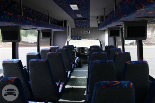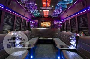 This is Seattle's newest limousine and executive bus and has been custom made by Tiffany Coach Builders for A&A Limousine. This limo bus offers leather seating,custom surround sound, strobe lights, flat screen TV, dance light shows, privacy shades, chauffeur telephone access, dual control stereo and lighting systems, I-Pod hook-ups, laser light shows,bar areas for bottle storage, ice bin storage, and custom glassware. This coach is even perfect for a wedding party or for smaller groups. Comfortable:16 Passengers Maximum: 18 Passengers Don't get stuck with an imitation of a Limo Bus, make a statement with the best. An old Shuttle or Metro Bus with a bar is not the same as our new Limo Coach