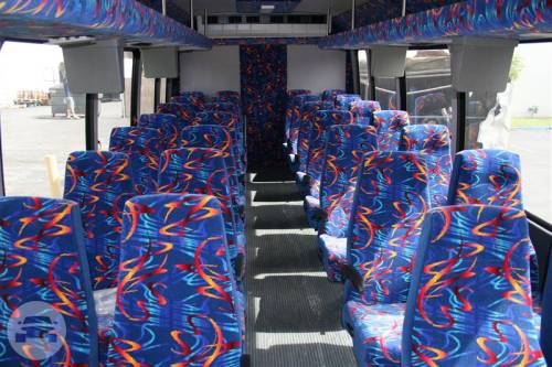 29 Passenger coach, with one co pilot seat and space for luggage in the rear. Overhead Passenger Luggage Racks for Carry On Items. High Back Reclining Passenger Seats with Arm Rests. Large Touring Style Windows. Has 4 flat screen LCD TV, DVD and CD player. Also equipped with PA System and a separate guide seat.
