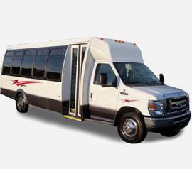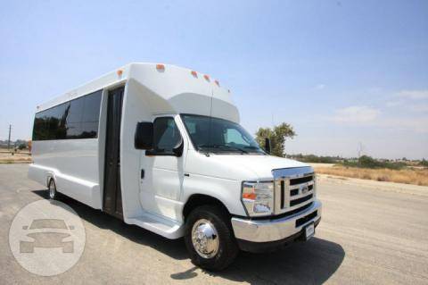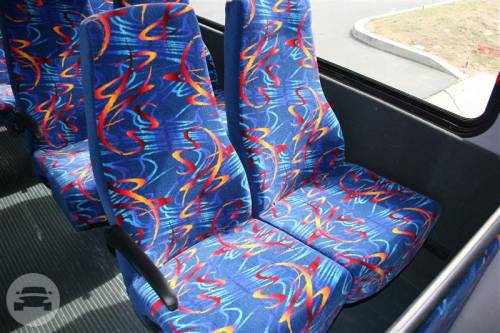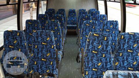 NEW 24 Passenger mini coach with space for luggage in the rear. High Back Executive Style VIP Reclining Passenger Seats with Arm Rests. Large Touring Style Windows.