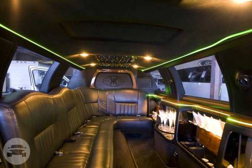 8-10 passengers, Mirrored Stargazor Ceiling with Fiber Optics, Ice and Champagne Coolers throughout Bar Service Set-up, LCD Monitor and DVD, Heating and Air Conditioning, Lighted Drop-Down Vanity Mirrors, Fiber Optic Lighting, AM/FM Stereo with CD/DVD/MP3 Player.