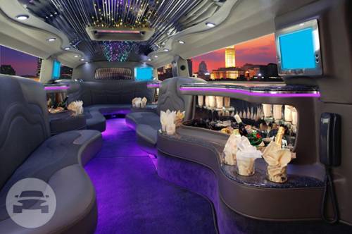 This 2014 models Chrysler limousine is the ultimate in luxury and convenience. With seating up to 10 passengers, our Chrysler is equipped with decorative lighting, CD/AM/FM/MP3 Stereo 1000 Watt System, Flat TVs, DVD, Strobe Lights, Disco Floor, Disco Ceiling, Color changing bar, ice cooler, and accessible rear controls. These elegant limousines are at your service for any occasion.