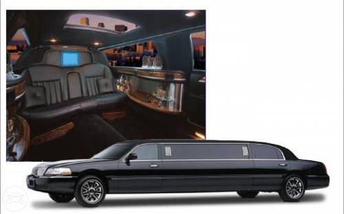 (6 passengers) Stretch Limousine for proms, weddings, graduations or just special nights on the town. The stretch limousine comes in six and ten passenger models and can accommodate up to three large luggage pieces. Amenities include A/C, tinted windows, ice bins, glasses and flutes, CD sound system, TV, DVD and a cabin partition.