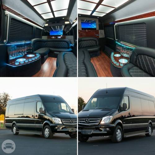 We are excited to introduce the “next generation” luxury vehicle to the Kansas City market, our Mercedes Sprinter Limousine! The ultimate combination of comfort, entertainment, understated elegance and convenience is now available for: Corporate trips, client entertainment, employee lunches, golf outings, city tours Special occasions including birthdays, anniversaries & graduations Wedding day services, bachelor & bachelorette parties Sports, concert & social events Holiday light tours, Pub Crawls, Winery Visits Shopping Excursions, Spa Days, GNO’s Anything else you can imagine! The features you will love: Large sliding door opening for ease of entry and exit Spacious perimeter leather seating for up to 10 passengers 6’ 4” of head room – no more “crawling” in and out of your seats! Walnut Bar Area with ice chests and glassware Accent lighting throughout 2 large flat-screen TV’s including Apple TV! Premium Stereo System with iPod interface USB plug-ins Refrigerated storage drawer Rear luggage compartment Classic, sleek body style on 170” wheelbase with smooth Mercedes ride Once you experience this innovative luxury vehicle, you may never be able to settle for less! We look forward to serving you and welcome your feedback!
