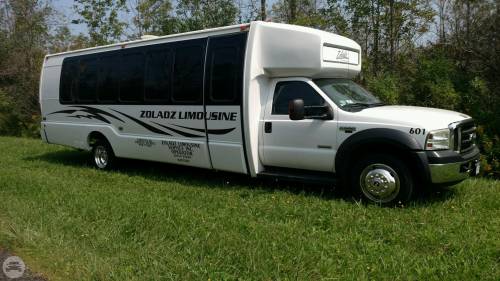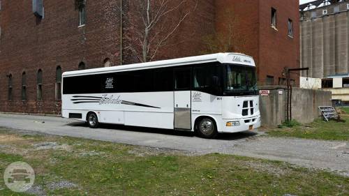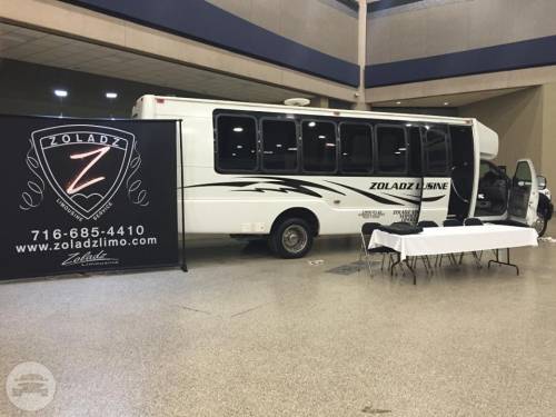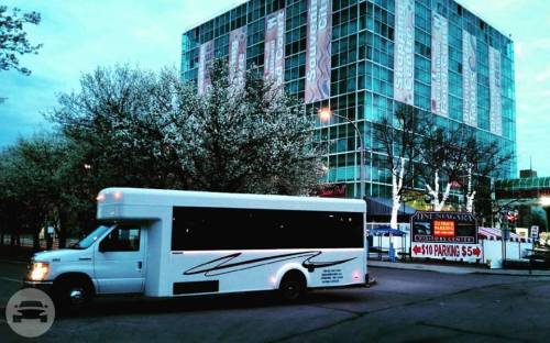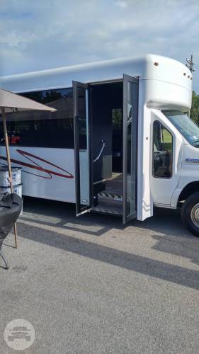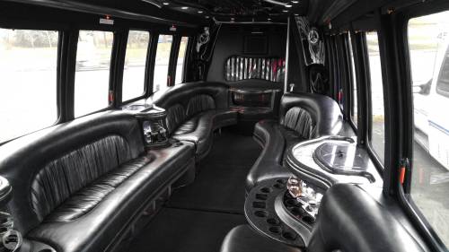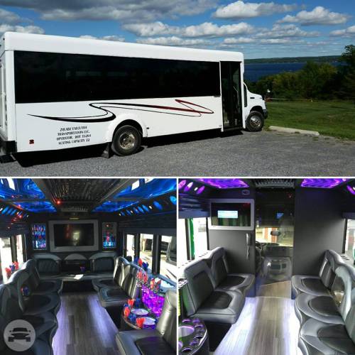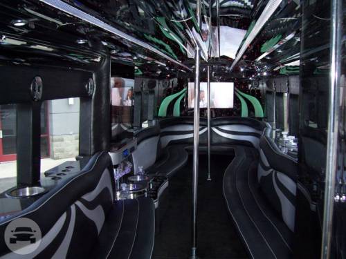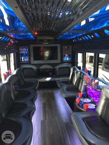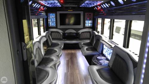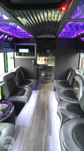 DETAILS 22 Passenger Coach Limousine style seating CD/AUX input Two Tv's LED Lighting Strobe Lights Laser Lights Multiple drink bars Privacy Door