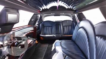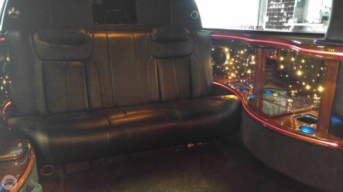 DETAILS 10 Passenger Lincoln Town Car Stereo with AUX input Drink Bars Twinkle Ceiling Lights & Mood Lighting Privacy Partition