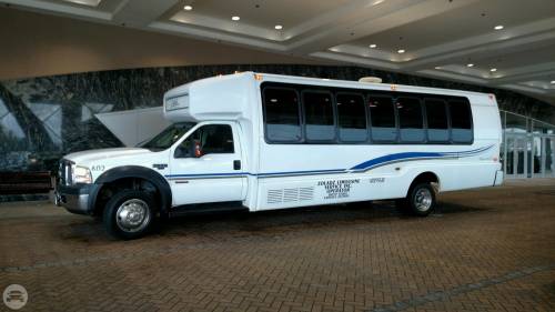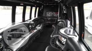 DETAILS 30 Passenger Luxury Liner Limousine style seating LED mood lighting Two Support poles Restroom on board Two main bars Stereo with AUX input Luggage compartments