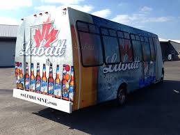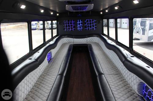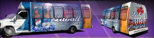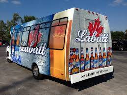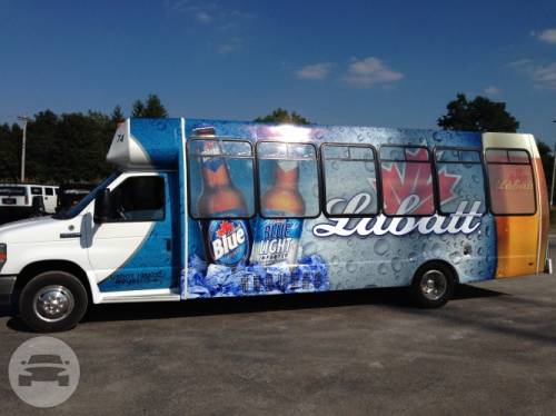 Capacity: 24 passengers What's big and blue and ready to transform any ordinary event into one you and your party will surely never forget? Our Labatt Blue Superstretch Limo Bus is the ultimate Exotic Coach for luxury tailgating, sporting event transportation, bachelor parties, concert transportation and everything in-between. It's exterior features a custom Labatt Blue paint job with graphic-tinted windows for total privacy. On the inside, up to 24 passengers will be treated to front-to-back U-shaped leather seating, in addition to controllable fiber optic lighting to set the ideal mood. A state of the art sound and video system connects easily to your iPod or mobile device, while a bar stocked with ice and glasses keeps your drinks cold.