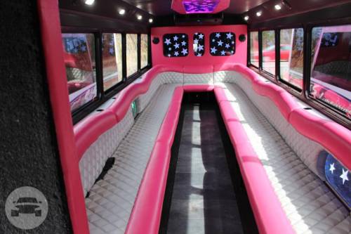 Brand New Pink Limo Bus Up to 29 passenger limo coach Custom pink and silver leather seating Designed with all those who "Love Pink" in mind! Full limo coach amenities such as built in bar areas LED lighting and full audio and video capabilities including ipod connections
