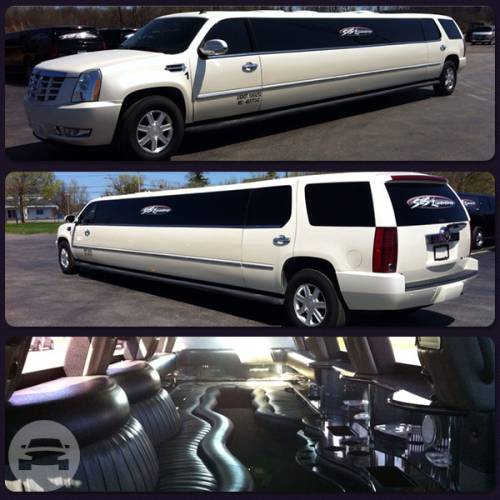 Passengers: up to 19 Nothing says total luxury more than a Cadillac Escalade stretch limo, available in black, white or grey. Your party will be speechless when they first set eyes on this marvel of modern opulence. The black stretch Escalade boasts some of the finest amenities anywhere on four wheels. Among them, a mood-enhancing LED fiber optic light system with state of the art audio & video system that connects directly to your iPod or mobile device.