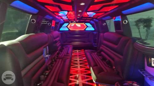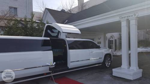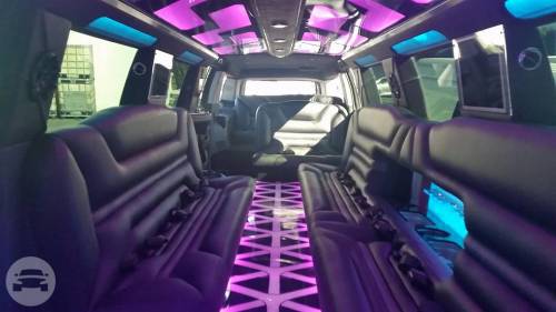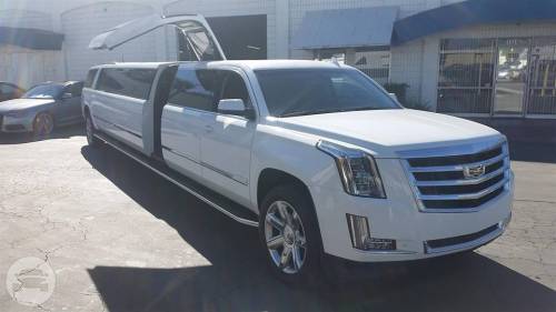 Legend's 18-20 Passenger Cadillac Escalade is a beautiful selection for groups of 13-16. The exterior of the vehicle is painted the original "White Diamond" Cadillac paint. The sleek, solid window look makes the vehicle look real sharp going down the road. The interior features fiber optic, strobe, and laser lighting. A high output stereo and CD player, along with four flat screen TV's complete the entertainment package. The interior also features a disco-like floor, which changes color with the fiber optic lighting in the bars and ceiling.