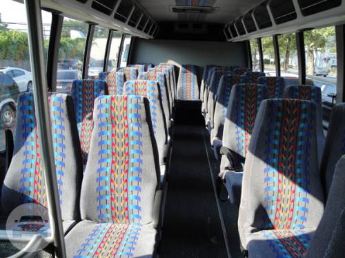 Comfortably seating 27 passengers, these buses look great going down the road. The 27 individual seats are comfortable, reclining, and well cushioned. Over head compartments are perfect for small bags & carry-on luggage. For groups with additional luggage, these buses also accommodate a moderate amount of bags in the rear luggage compartment. Entertainment includes stereo surround system, a 15" television, and a DVD player.