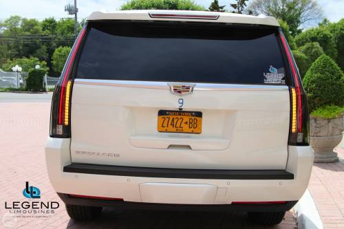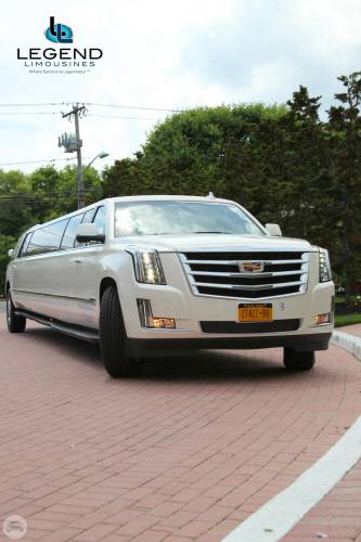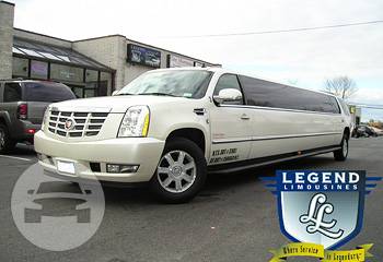 Legend's 18-20 Passenger Cadillac Escalade is a beautiful selection for groups of 13-16. The exterior of the vehicle is painted the original "White Diamond" Cadillac paint. The sleek, solid window look makes the vehicle look real sharp going down the road. The interior features fiber optic, strobe, and laser lighting. A high output stereo and CD player, along with four flat screen TV's complete the entertainment package. The interior also features a disco-like floor, which changes color with the fiber optic lighting in the bars and ceiling.