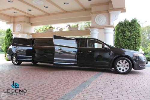 The NEWEST AND LATEST LINCOLN LIMOUSINES, these all new Lincoln MKT Limousines are the replacement to the Lincoln Town Car. Lincoln terminated production of the Lincoln Town Car in 2011, and these MKT's are state of the art. These Black MKT Limousines comfortably seat 7-8 people. The vehicles feature a very attractive solid window construction, and LED opera lights. Another one of Legend’s 5-door vehicles, these limousines are extremely easy to get in and out of because it loads its passengers from the front and the rear. The interiors are bound to amaze with their simple but elegant feel. Three-bench seating accommodates 8 people very comfortably. Stainless steel bars and bar backings with lightly stained teak wood accents delightfully adds to the very rich and quality atmosphere. Romantic twilight stars are in the stainless steel ceiling and change color with fiber optic illumination of the glassware. Amenities include full bar, CD/DVD player with BlueTooth connectivity, and 2 separate 22” flat screen televisions. One television is mounted on the partition that separates clients from chauffeur, and the other is mounted right into the main bar behind a transparent mirror! A touch screen control panel that controls temperature and lighting ensures that these vehicles are not only elegant and entertaining, but also simple to use!