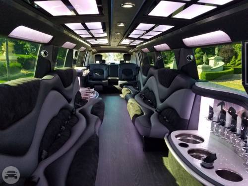 Our Escalades are the Nicest in The Industry. They Have the Latest One Window Design. Loaded with every option Available in our One of A Kind Custom Interiors. Great for Weddings, Nights on the Town and of Course the Special Prom Day. Amenities: Air conditioning Bars throughout the vehicle Flat Screen TV’s Blue Lights Fiber Optics RGB Lighting Touch Screen Controls Ipod hookup Stainless steel ceiling