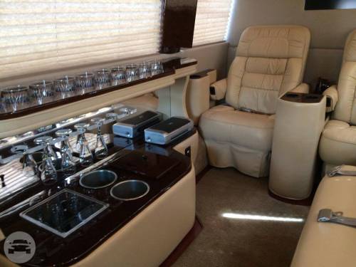 This is our 14-passenger Limobus equipped with Fiber optic Lighting, CD Stereo, DVD Player, Ice Chest & Glasses.