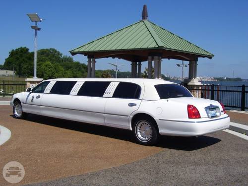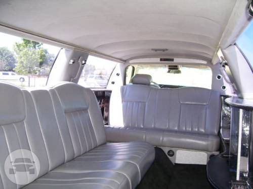 This is our white 10-passenger Superstretch Limousine equipped with Fiber Optic Lighting, CD Stereo, DVD Player, Ice Chest & Glasses.