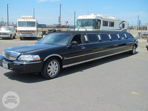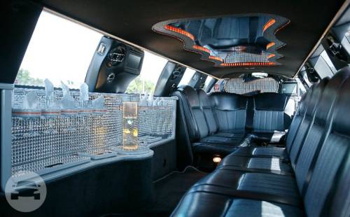 This is our black 10-passenger Superstretch Limousine equipped with Fiber Optic Lighting, Touch Screen Controls, CD Stereo, DVD Player, Ice Chest & Glasses.