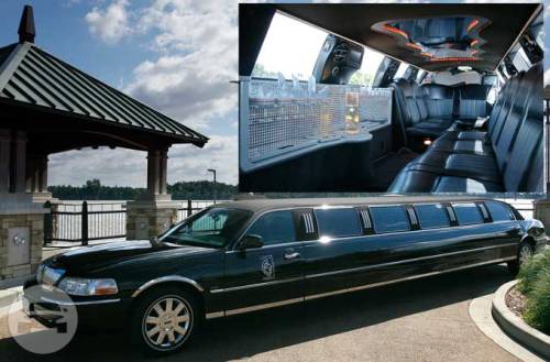 This is our black 14-passenger Superstretch Limousine equipped with Fiber Optic Lighting, CD Stereo, DVD Player, Ice Chest & Glasses.