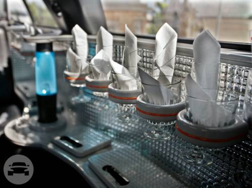 This is our 8-passenger Limobus equipped with Fiber optic Lighting, CD Stereo, DVD Player, Ice Chest & Glasses.