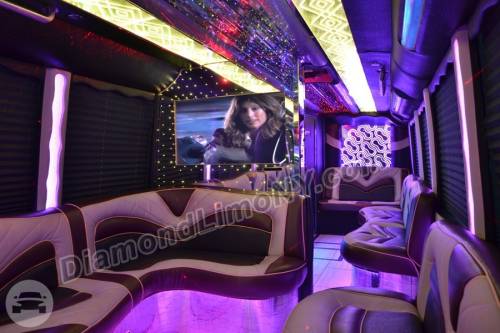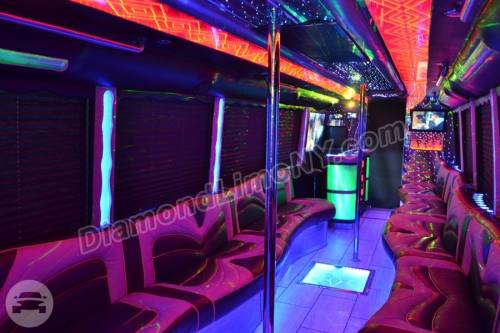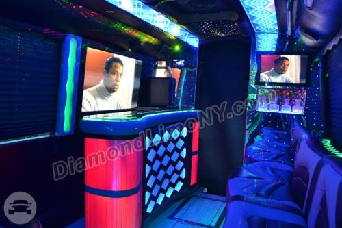 Want to arrange a party on wheels? The 27 passenger party bus will offer incredible fun and excitement for your every partying event whether it’s a birthday, bachelor or Sweet Sixteen. This explicit fleet is equipped with latest technology, tracking vision satellites; IPOD hook-ups, fiber-optic lighting throughout, DVD/CD player etc. to make your special event more delightful. Our party bus features following partying amenities: SPECIFIC FEATURES: ♦ Flat Screen TV ♦ Neon Lights ♦ Dancing Pole ♦ IPod Connector ♦ High Quality Sound System ♦ Comfy Leather Seats