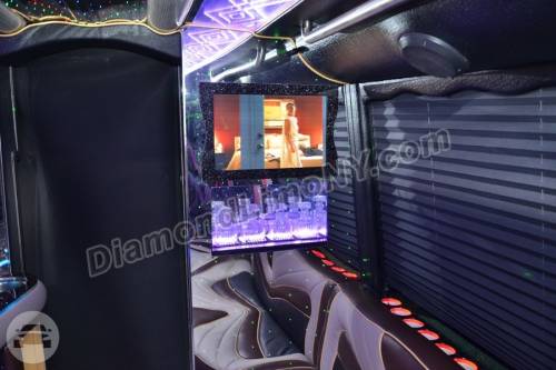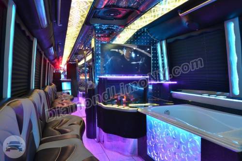 his exotic fleet is considered ideal and perfect party bus for wedding transportation, sightseeing, tours, tailgate parties, etc. SPECIFIC FEATURES: ♦ State of the art entertainment system ♦ LCD flat screen ♦ Mirror ceiling and luxurious interior ♦ Full stocked bars with ice buckets, water, soda and ice ♦ CD/DVD player ♦ Fiber optic mood setting lighting ♦ Tinted Windows ♦ On board restroom ♦ Separate washrooms