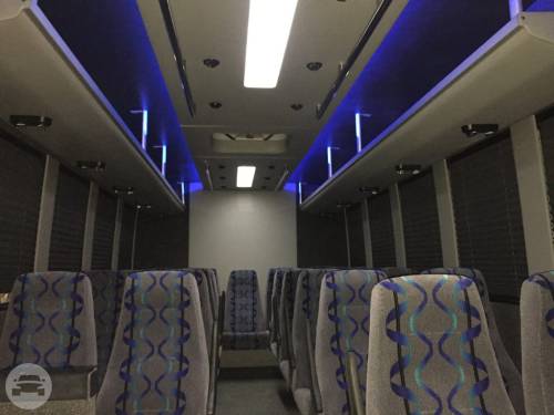 Passengers: 23 Vehicle Color: Pearl White This 23 Passenger Executive seating bus is perfect for long hauls, or short trips just around the corner. Forward facing cloth seats is perfect for sports teams, church groups, corporate outings or anything you don’t need a big flashy bus for! Forward Facing Seating Armrests Cup Holders TV In the Front Hardwood Floors Courtesy Lighting AM/FM/CD/DVD/MP3 Entertainment System Overhead Luggage Storage