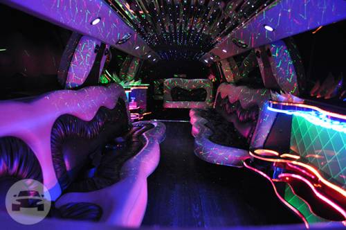 15 passenger Black exterior Charcoal leather interior Limousine style interior Interior standing height over 6 ft CD/DVD/FM USB/AUX Input Surround Sound System Two 40" flat screen TVs Fiber optic & neon lighting